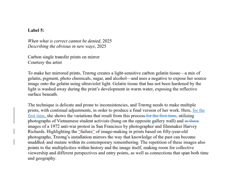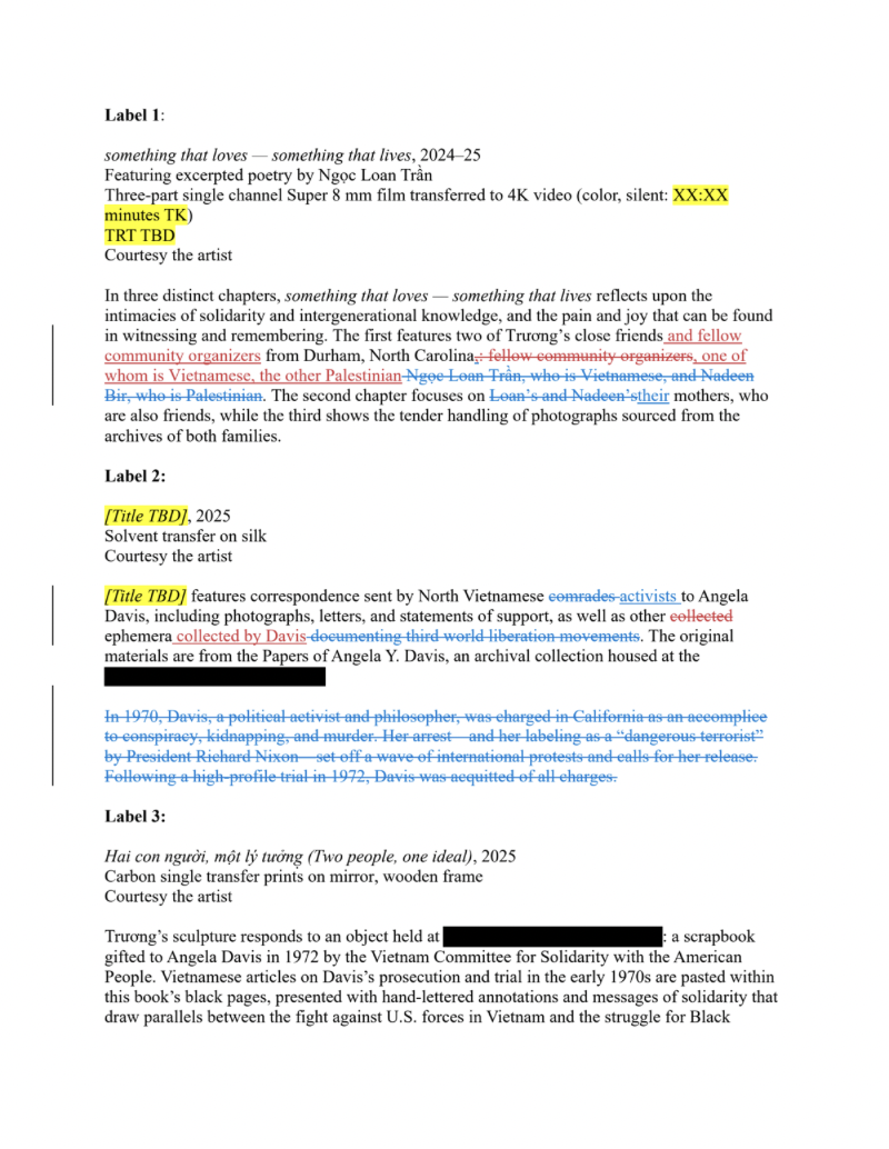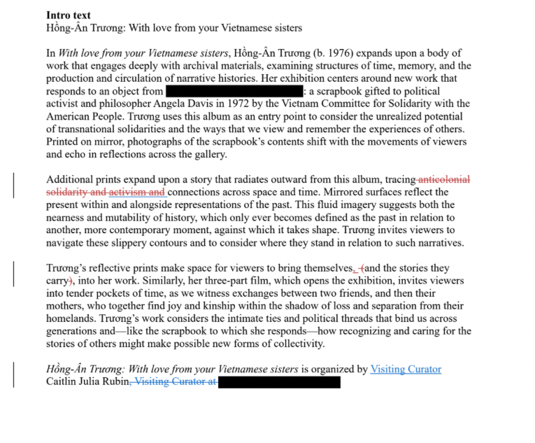 Hồng-Ân Trương is an interdisciplinary artist whose work explores immigrant, refugee, and decolonial narratives and subjectivities. Using video, photography and sound, her work interrogates the narrative paradigms of media forms, and how they shape what we come to know about political and historical events. Her work was included in Prospect.4: The Lotus in Spite of the Swamp (New Orleans) and has been exhibited at the Nasher Museum of Art (NC), The Kitchen (NY), Nhà Sàn (Hanoi), and the Irish Museum of Modern Art (Dublin), among other places. She has been a Guggenheim Fellow (2019-2020), the Capp St. Artist in Residence at the Wattis Institute for Contemporary Art (2020), and a MacDowell Residency Herb Alpert Fellow (2022). Hồng-Ân lives in Durham, North Carolina where she is an organizer and teaches in the Department of Art & Art History at the University of North Carolina at Chapel Hill.